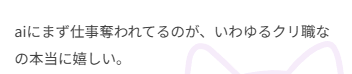 ▲クリエイティブと言っても本当にクリエイティブなことしてた人なんて一部で、それ以外の単にフォトショでそれっぽい素材作って月給もらってた人がほとんどだから。携帯電話が普及しても、インターネットが普及しても、人間の仕事なくなってないしやるべきことが変わっていくんだろうね